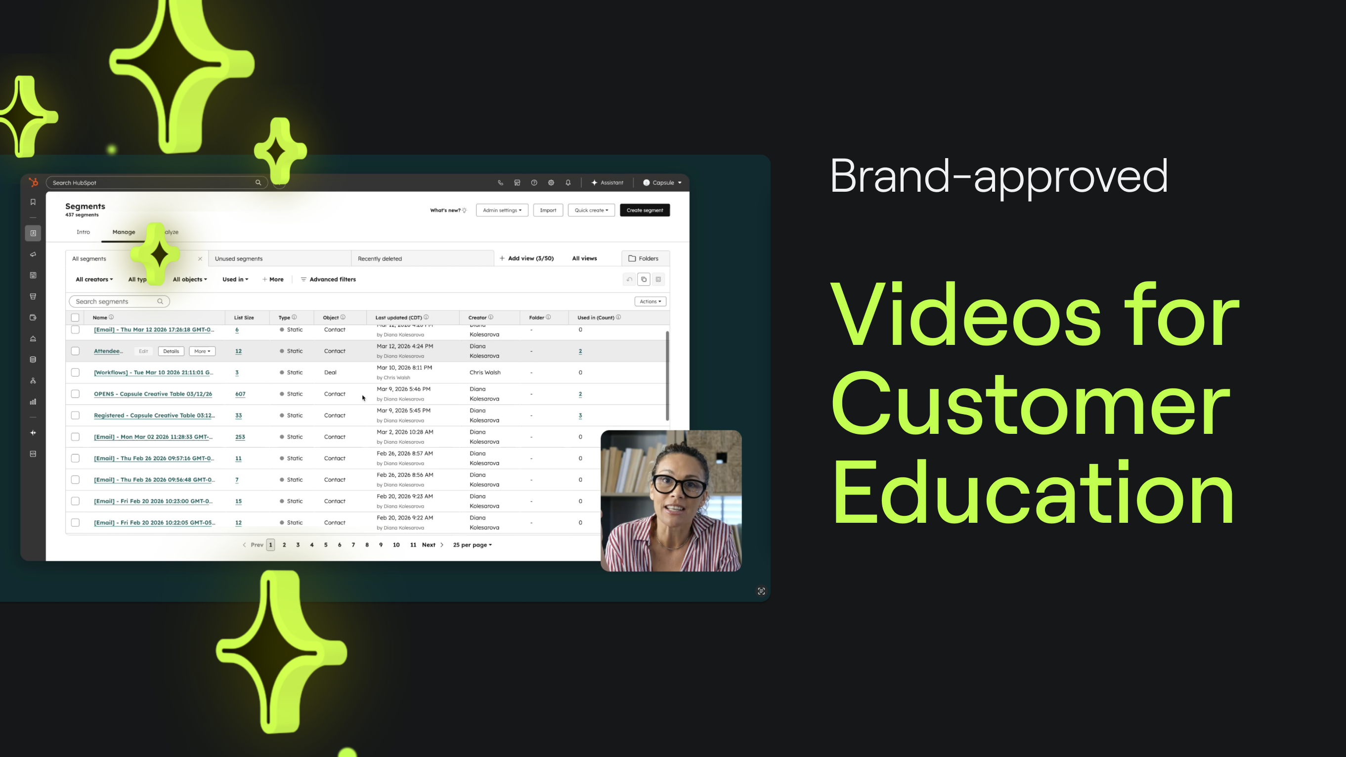 Most self-serve video tools lack brand guardrails that non-creatives need. Capsule fixes this with pre-approved templates built by your creative team. So every tutorial, demo, and walkthrough your educators make is on-brand.